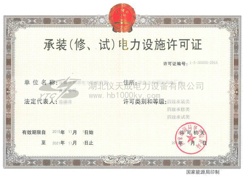 電力承裝承修承試資質許可證書,是國家電力監管委員會對于能夠對新設備安裝、設備維護和護理、設備的預防性試驗的企業頒發的資質許可證書, 取得許可證的單位依法開展活動,受法律保護。
