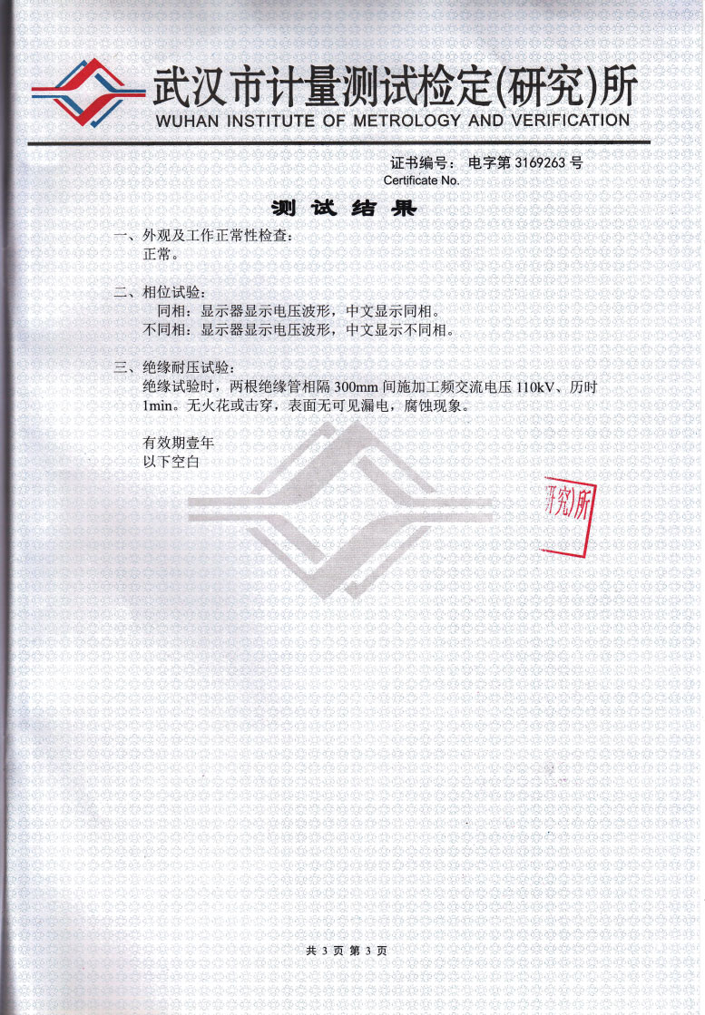 適合安規 GB13398-92、GB311.1-311.6-8、3DL408-91標準和國家新頒布電力行業標準《帶電作業用1kV~35kV便攜式核相器通用技術條件DL/T971-2005》要求