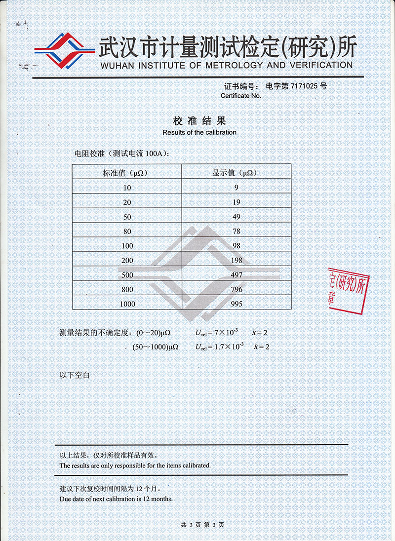 分 辨 率 1μΩ