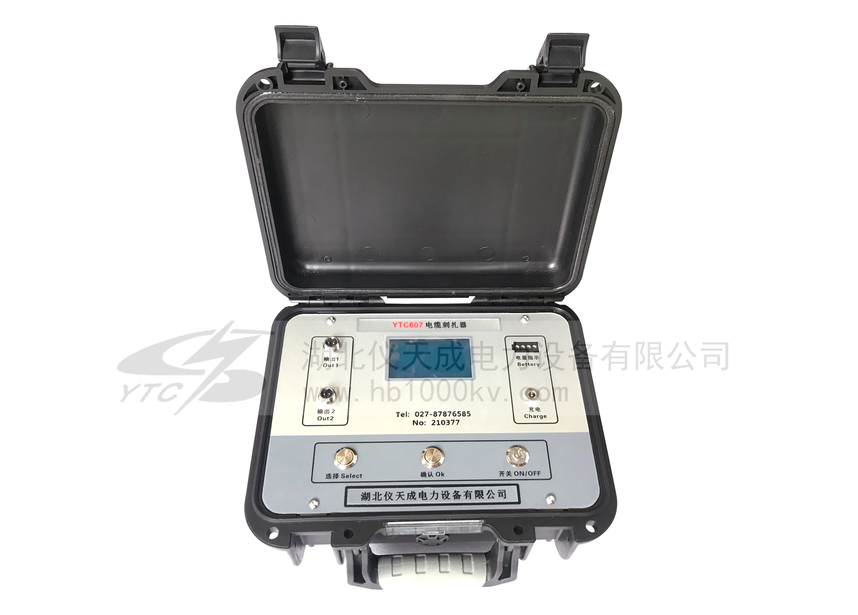 發射機:帶電電纜識別、停電電纜識別時發射信號給目標電纜,內置大功能率可充鋰電池,自動阻抗匹配,全自動保護。發射機采用一體化專用工具箱式設計,用聚丙烯塑膠作為原料,添加新型復合填充料一次注塑成形,密度小、強度、剛度、硬度、耐磨性、耐熱性、絕緣性能更優越,其箱體能承受約200kg的壓力,主機超大LCD實時顯示剩余電池電量,白色背光、發射信號動態指示,一目了然。