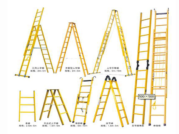 絕緣梯種類有:絕緣單梯,絕緣合梯,絕緣人字梯,絕緣伸縮單梯,絕緣升降合梯,絕緣升降人字梯。